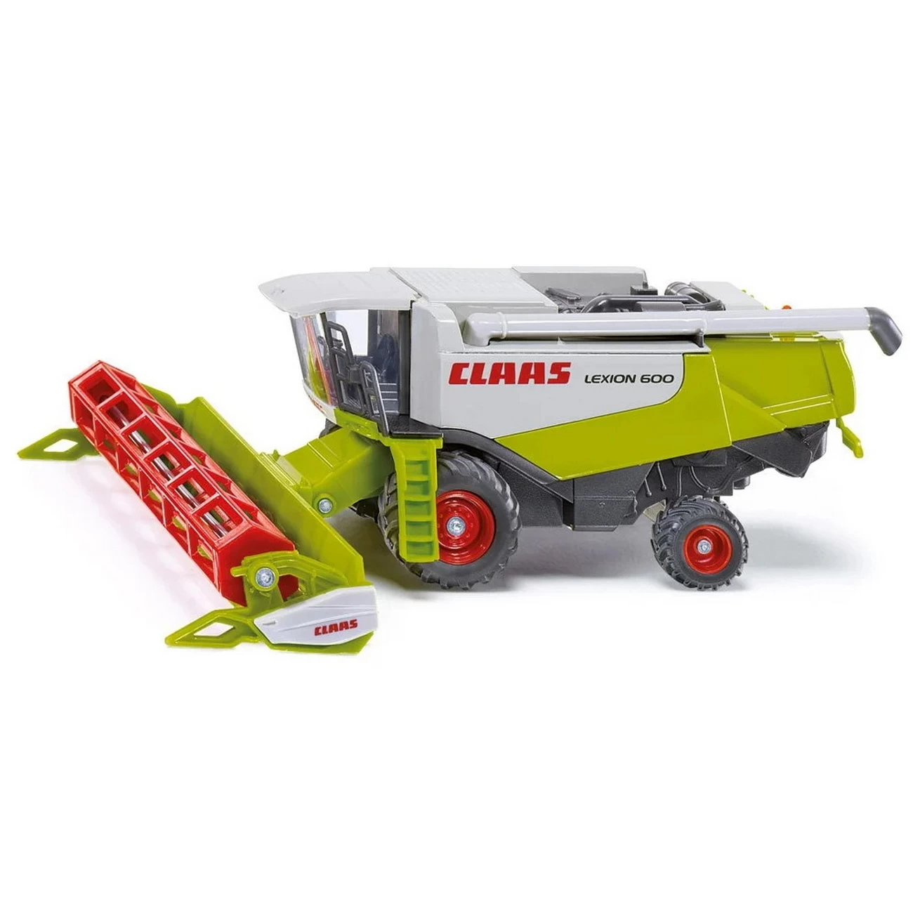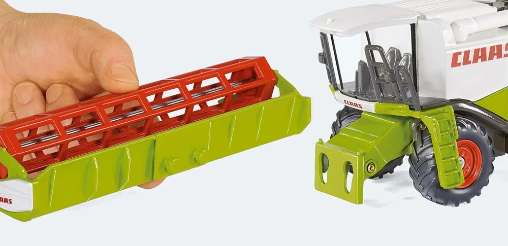 Der gigantische Claas Lexion 600 ist als 1:50 Modell das Highlight der neuen landwirtschaftlichen Serie im kindgerechten Maßstab. Das Oberteil ist aus Metall, die bewegliche Haspel aus Kunststoff. Das Abtankrohr ist schwenkbar. Das Modell rollt auf Reifen mit gummierten Laufflächen und originalgetreuem Profil..