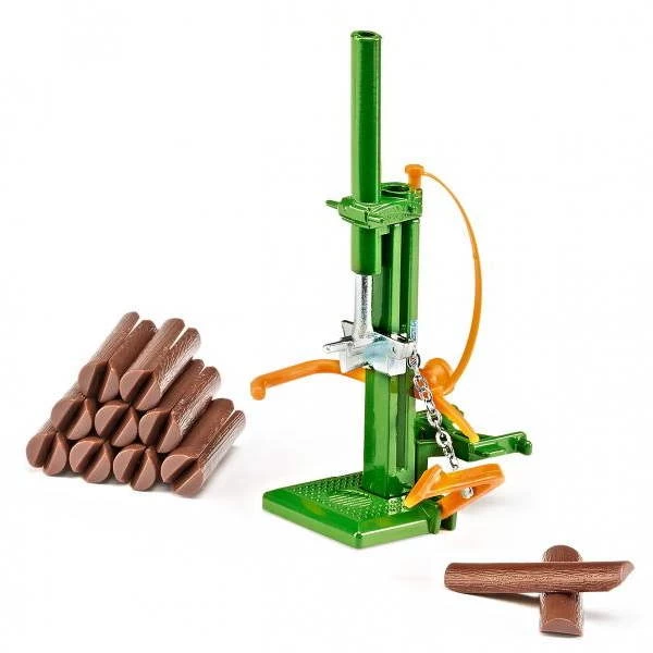 Zum fachgerechten Spalten von Brennholz ist ein Holzspalter unerlĂ€sslich. AngehĂ€ngt an die Heck-Kupplung eines SIKU-Traktors spaltet das GerĂ€t der österreichischen Firma Posch vorbildgerecht die mitgelieferten KunststoffbaumstĂ€mme in zwei Teile. Der bewegliche Spalthammer zieht ĂŒber einen mit einer Kette verbundenen BĂŒgel den Baumstamm in die optimale Spaltposition. Der Spalthammer fĂ€hrt herunter und trennt den Baumstamm in zwei HĂ€lften. Teilbare BaumstĂ€mme als Zubehör.