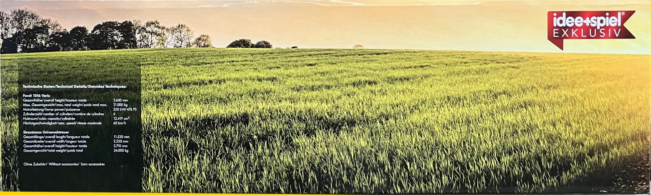 Daten Fendt 1046 Vario: Gesamthöhe: 3,60m – max. Gesamtgewicht: 21.000kg – Motor: 6 Zylinder 12.419cmÂł mit 350kW/ 476PS – Höchstgeschwindigkeit: 60km/h